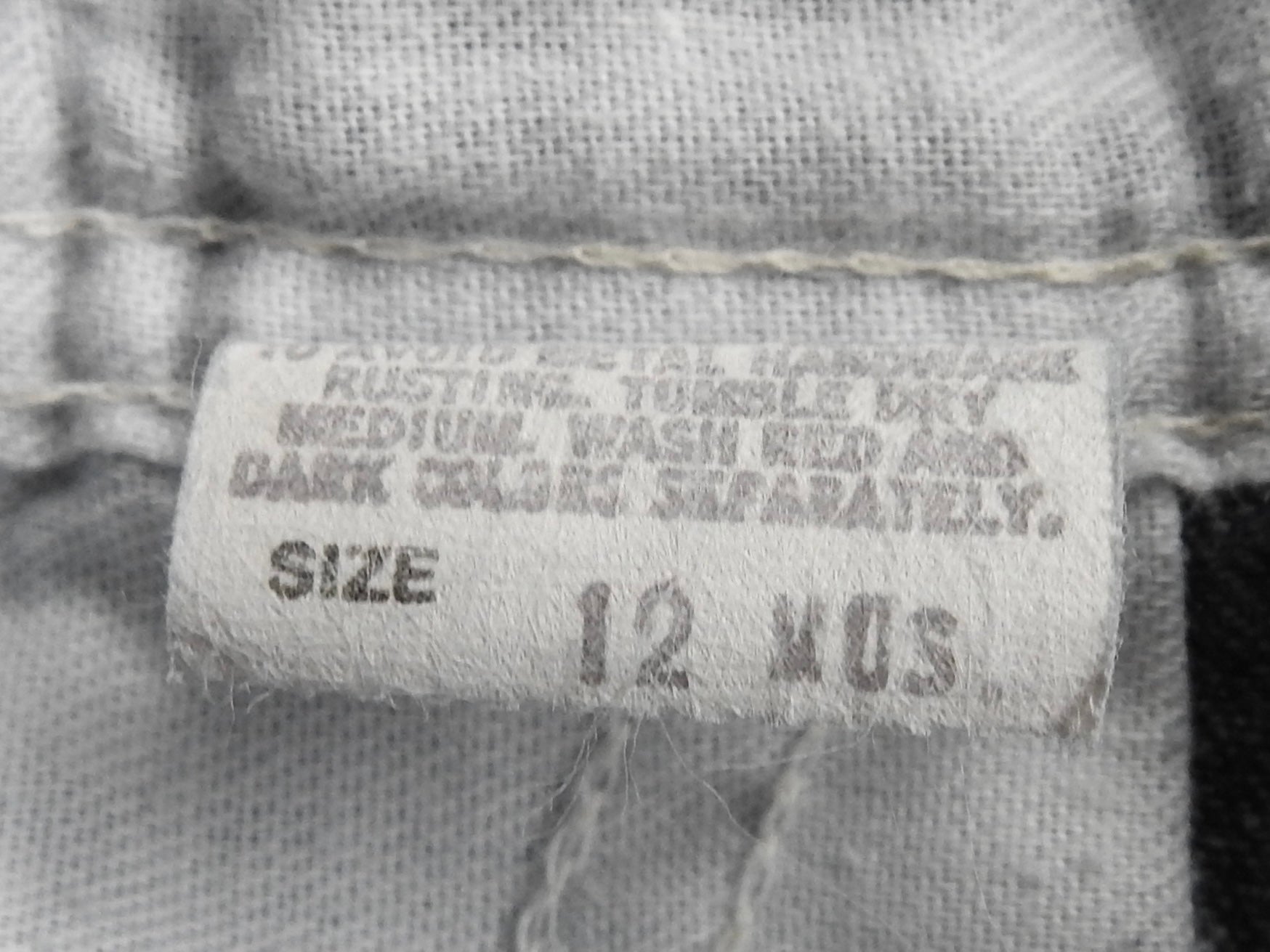Detail: Fabric may show signs of wear, uneven color on strap metal hardware due to age (appears silver with gold tint)