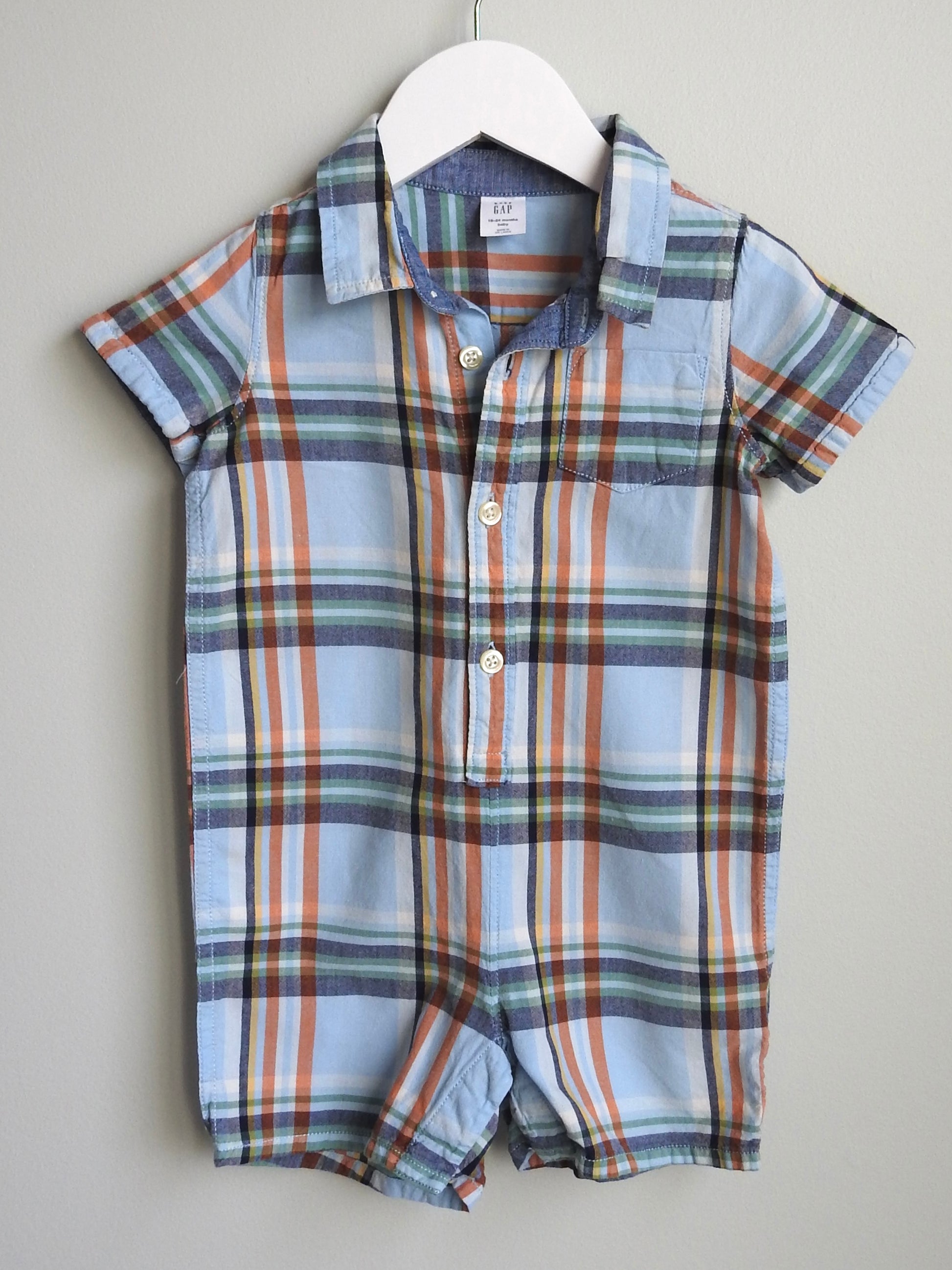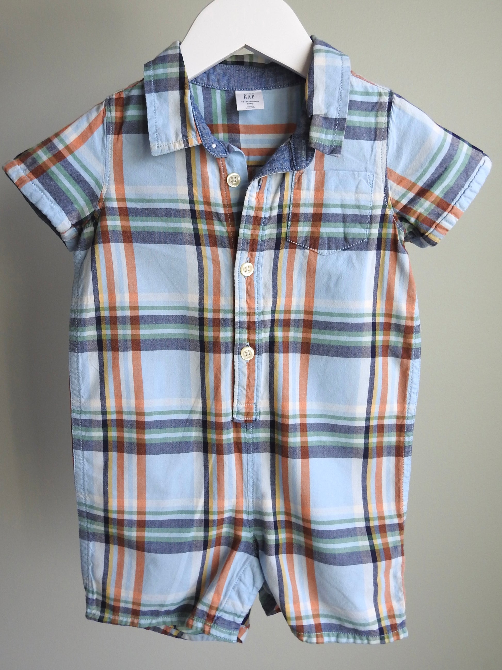 Baby Gap Blue Orange Plaid Collared Romper 18-24M