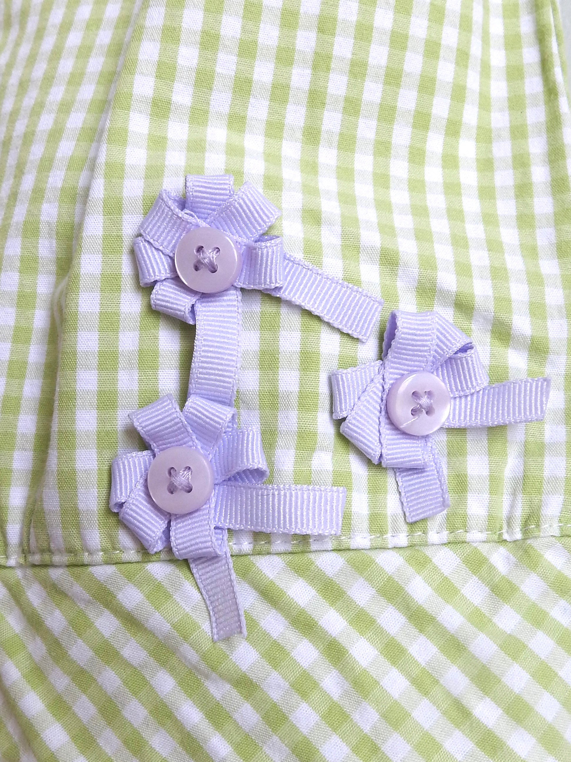 - Purple bow and button detail