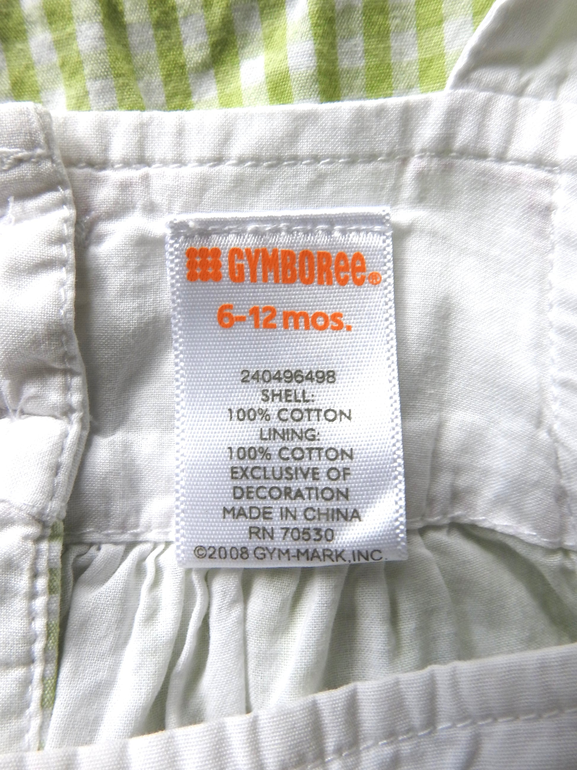 2008 Gymboree Green Gingham Dress 6-12M
