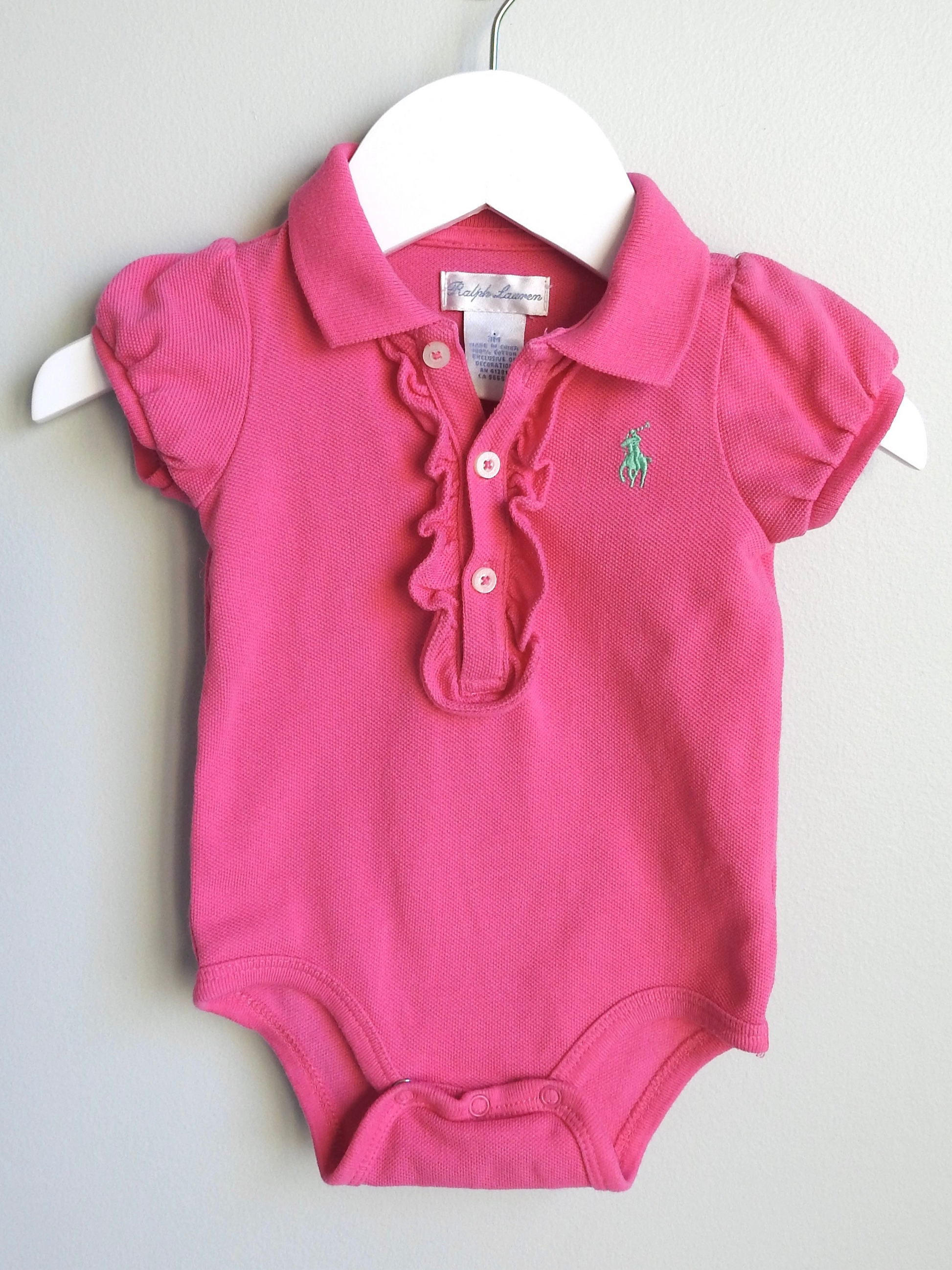Ralph Lauren Pink Polo Collared Ruffle Bodysuit 3M